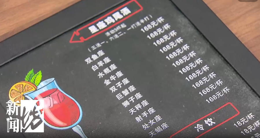 一般顾客进入酒吧只会拿到一般菜单,专门招待“酒托女”的“服务员”,则会供给带有“星座鸡尾酒”的特别菜单,专供嫌疑犯食用。其间,“星座鸡尾酒”标价为168元一杯,“12星座套餐”则为2016元一打。实践上,它们都是用廉价洋酒加红茶或果汁等勾兑后的饮品,本钱仅几元一杯。